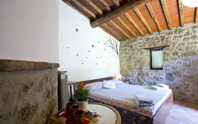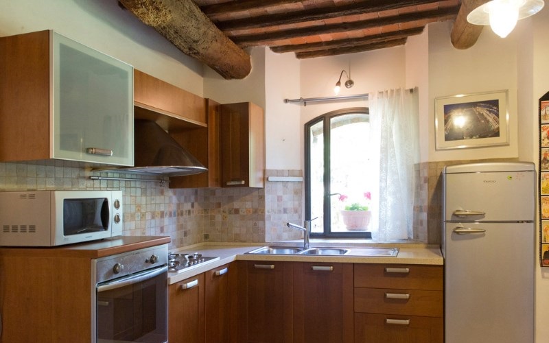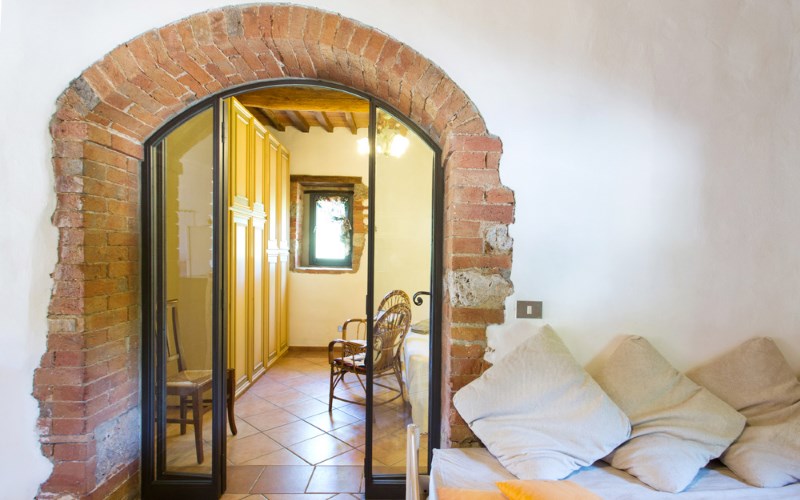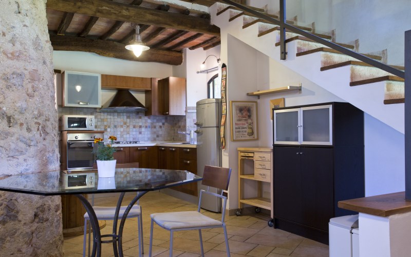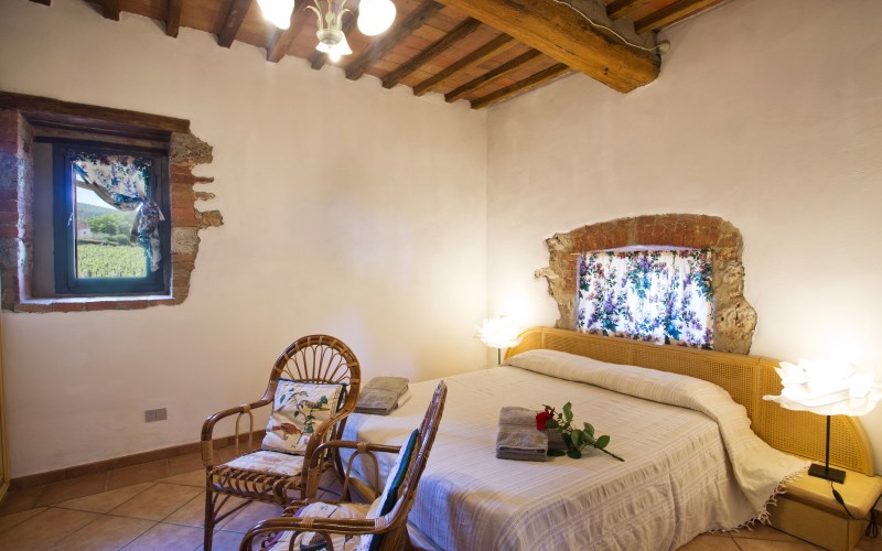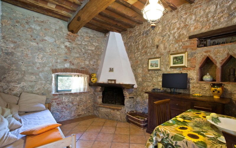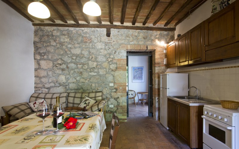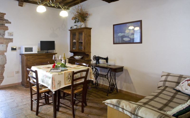 Les appartements de l’agritourisme sont à côté de la résidence des propriétaires, lesquels sont toujours disponibles pour apporter aide et assistance. A l’intérieur, d’un séjour-salle à manger avec coin couture, on accède à une chambre à coucher et à la salle de bain, chacune avec leur linge. Les fenêtres donnent sur le vignoble et sur le château de Monteriggioni. L’équipement est fonctionnel et complet, avec en plus la TV satellite (Hot Bird).